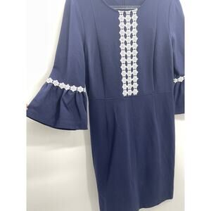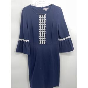 NANETTE LEPORE Womens Blue Bell Sleeve Lace Detail Stretch Dress Size 8 Coquette