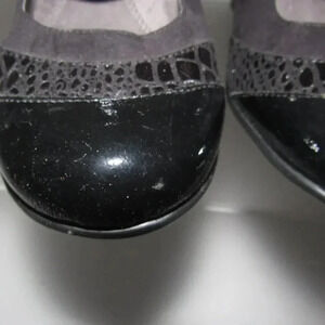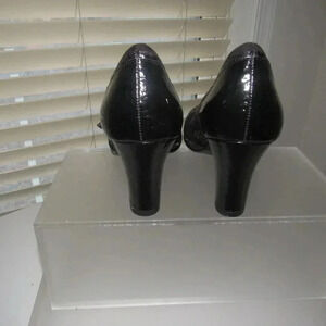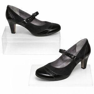 AEROSOLES Mary Jane Faux Croco Patent Suede Black Chunky Heels Pumps Size 10M