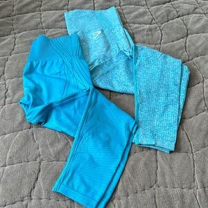 VS pink shimmer bikini set with adjustable ties. Perfect for beach days. Set includes bandeau top, side tie thong bottom, and NWT high waisted bottom