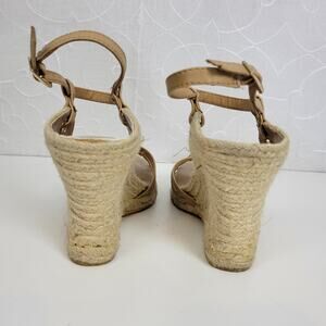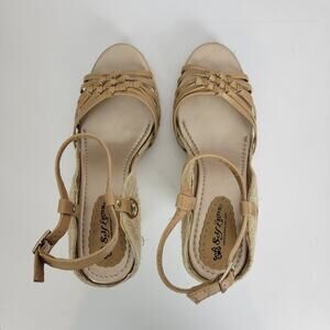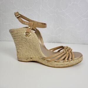 Self Esteem Womens Sandals Size 9 Brown Cork Strap Slingback Wedge Heels