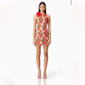 ELLIATT ROSELYN RED & GREEN 3D FLOWER LACE GUIPURE MINI DRESS