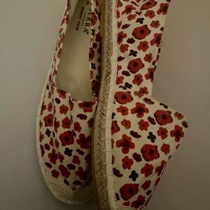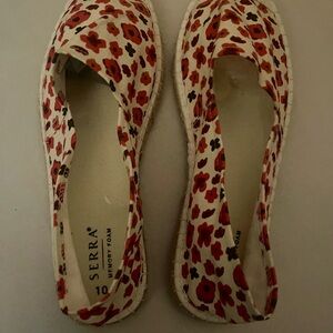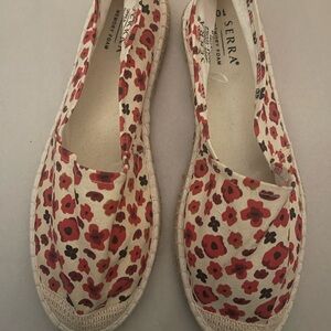 Step out in style with Serra Women's Floral Espadrilles. Featuring a vibrant red floral pattern on a cream background, these shoes offer both comfort and elegance. Perfect for casual outings or a day at the beach.