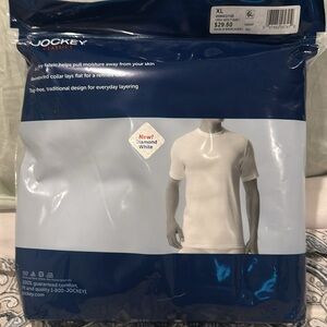 Jockey Classics white crew neck T-shirts in size XL. Reinforced collar for durability.