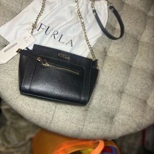 XSOLDX Furla Black Leather Mini Crossbody Bag W/ dust bag