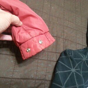 Size Large -,, True Measurements are as follows-- Pit to Pit 24 x 28 Length---Pleasse know your measuremenst,,,,,,size an people in 70-80's run smaller Very nice for age,,, evrything works ,,,80%Down Zippers an buttons work fine,,,,,,Very warm an ggod weight Color is a red orange shade,,,,,not true red or true orange..Mayybe Coral or Salmon color