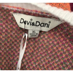 This is a women's sweater with a diamond pattern in pink, orange, green, and white. It is made of a soft, knitted fabric and has a relaxed fit. The sweater has a crew neckline and long sleeves. The sleeves are slightly gathered at the cuffs.