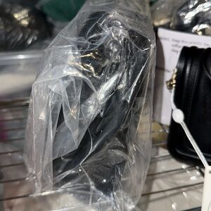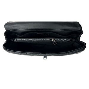 This elegant black quilted bag features a stylish chain strap, perfect for any occasion. Its sleek design adds a touch of sophistication to your outfit.
