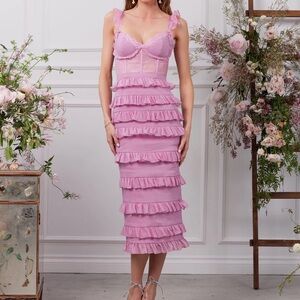 Elegant lavender midi dress with ruffled layers. Perfect for special occasions. I bought dress and only tried it on and it was a little too busty for me for a christening. See dress in posting. Dress is brand new and I can’t return 🫣.