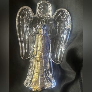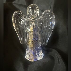 Murano Art Glass Angel with praying hands blue and gold inside Figurine. 6 inch height. No markings. Tiny nick or how made on bottom. See photo. Not noticeable and does not affect its beauty. Price reflects Smoke and pet free home