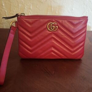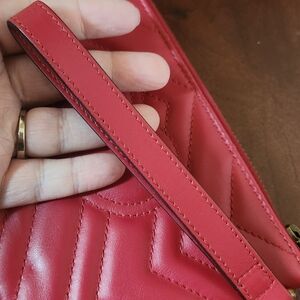 Gucci Red Leather Matelasse GG Marmont Wristlet