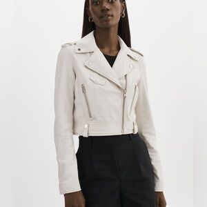 Lamarque Ciara Leather Moto Biker Jacket Bone Size Medium $625