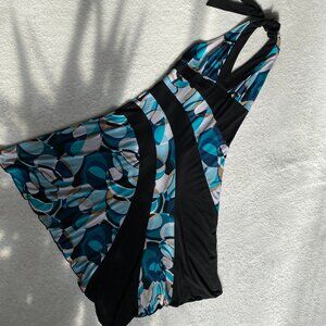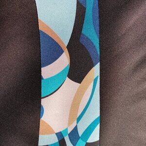 Women's Colorblock Geometric Turquoise, Black, and Tan Halter Top Dress M