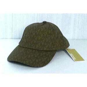 $68 Michael Kors Printed MK Logo Adjustable Baseball Cap Hat KHAKI color