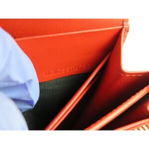 $680 BURBERRY PORTER RED LOGO EMBOSSED LEATHER FLAP CONTINENTAL