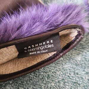Cashmere by Bloomingdale's Purple Leather Gloves w/fur trim