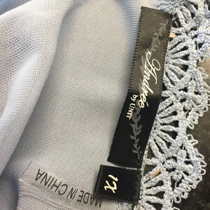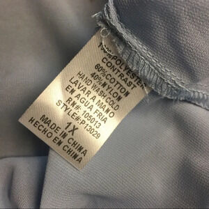 Andree by Unit Blue High Neck Lace Front Semi Sheer Top, size 1X plus size. Keyhole & 1 button in back. Polyester, no stretch. style# P13029.