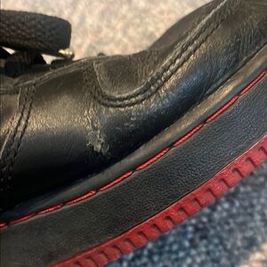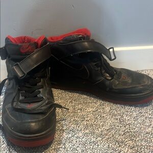 Step up your style with these Nike high-top sneakers. Featuring a sleek black design with striking red accents, these shoes offer both comfort and fashion. Perfect for any casual outing.
