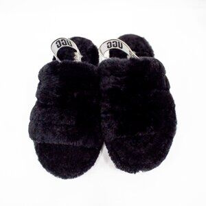 UGG OH FLUFFITA Platform Slide Black /UGG Logo Shearling Slipper Women's Size 10