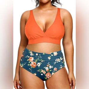 Yonique Womens Plus Size Bikini High Waisted Swimsuits Two Piece Floral