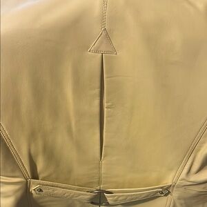 Elevate your style with this chic yellow leather jacket. Perfect for any occasion, it offers a sleek and modern look. Never worn. Few faint marks on back of jacket on top, shown in pictures 6, 7 and 8.