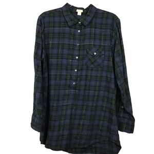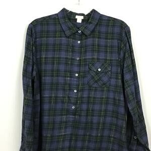 J. Crew The Perfect Shirt Popover Button Up Down Blackwatch Plaid Tunic Top sz L