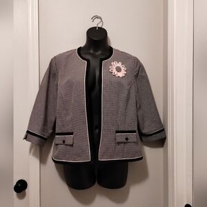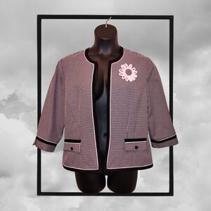 Black & Pink Plaid Blazer W Flower Pin