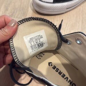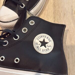 Classic black high-top sneakers with white accents. Iconic Converse logo on the side. Platform. Wore once only
