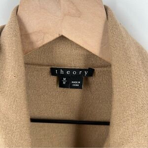 Theory Trincy Cardigan in Sandstorm Wool Long Sleeve Draped Open Front Longline