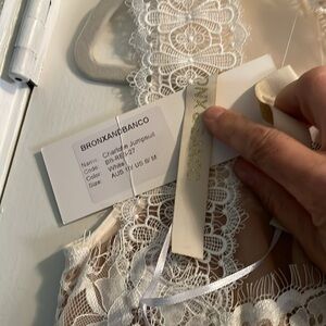 TAGS WERE REMOVED. I wore it once for a few hours for My son’s baptism . Jumpsuit has been washed and is in excellent condition.