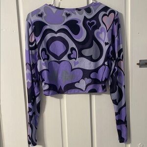 SHEIN Purple Patterned Long Sleeve Crop Top