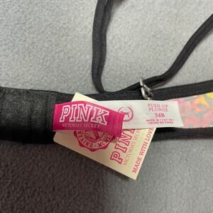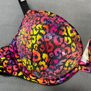 Victoria's Secret PINK Bra 34B Pink Yellow Black Sequin Plunge Push Up Animal Print