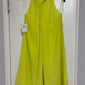 Brighten your wardrobe with this elegant lemon yellow sleeveless dress. The One One Six Womens Twist Back, Sleeveless Mini Dress with a Buttoned Mock Neck is perfect for any occasion, this dress offers a vibrant touch to your style. Two tiny specs from storing it (see photo 4 - tag is also visible in this photo).