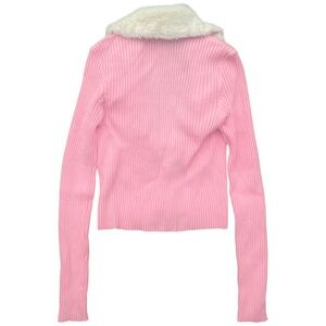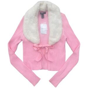 NWT Forever 21 Faux Fur Collar Tie Front Pink Coquette Stretch Knit Cardigan