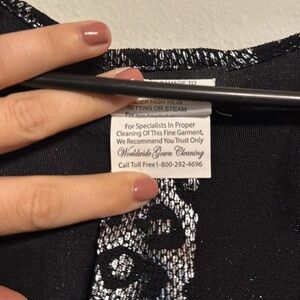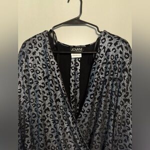 Super flattering, ruched sides. Long sleeve. Shoulder pads. Silver and black and fabulous. Size 10 dry clean only.