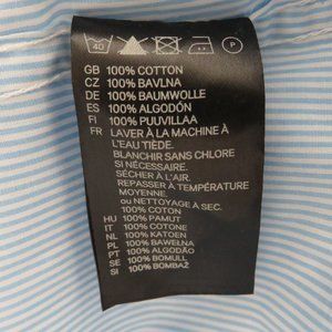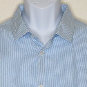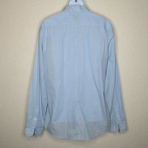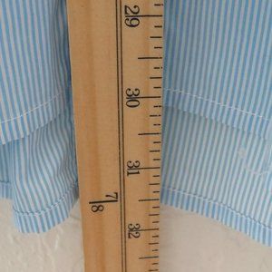 Pre-Owned Condition! 100% Cotton. Handsome Light Blue & White Striped Long Sleeve Button Down Dress Shirt with White Glossy Buttons(spares attached).