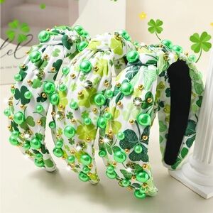 Add a touch of elegance with this green beaded shamrock headband