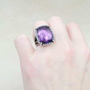 David Yurman Chatelaine Elongated Ring With Amethyst And Diamonds