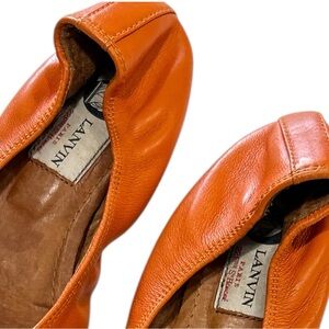 Lanvin Paris Ballet Flats Orange Leather Slip On Sz 36