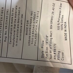 Approximately 18” x 18” square pillow with feather pillow insert