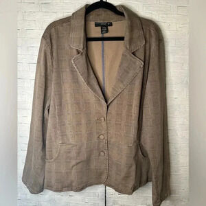 Venezia blazer plaid, brown & tan with hint of blue, packets, Y2K 90s in great condition