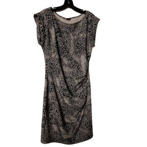 Ann Taylor animal print Ruched Black/White sheath dress Size 14