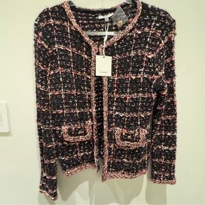 NWT- Sioni Black, Pink, Orange & White Tweed Cardigan Size Medium Women’s