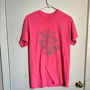 Vibrant pink tee with floral graphic. Soft and comfortable. Perfect for casual wear.