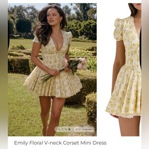NWT Sunfere Emily Floral V-Neck Corset Mini Dress