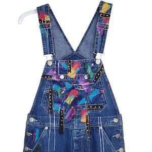 Carpenter jeans overalls, 100% cotton, hand painted in a very bold artsy way.