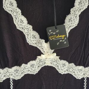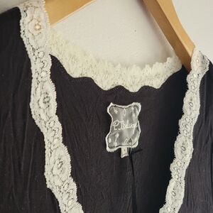 PJ Salvage Modal Blend Black Tee Top Off White Lace Lounge Medium