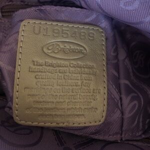 This stylish Brighton cream handbag features a chic tassel design, perfect for any occasion. Its elegant look is complemented by durable handles and a versatile strap. Stamped and numbered. New without tags.