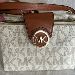 Michael Kors Crossbody Bag in White and Brown with Monogram