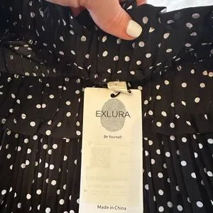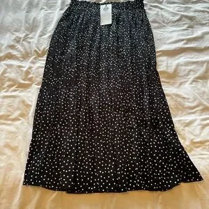 Women’s high waist black and white polka dot midi skirt. New with tags, never been worn. Has pockets. 100% polyester.
