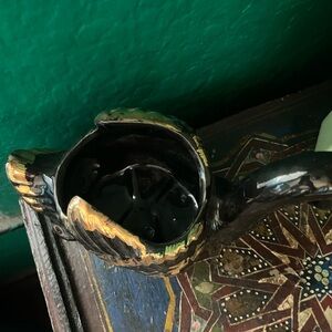 Vintage mid century 50s Bisque Co. 22 KT Black and Gold Swan vase